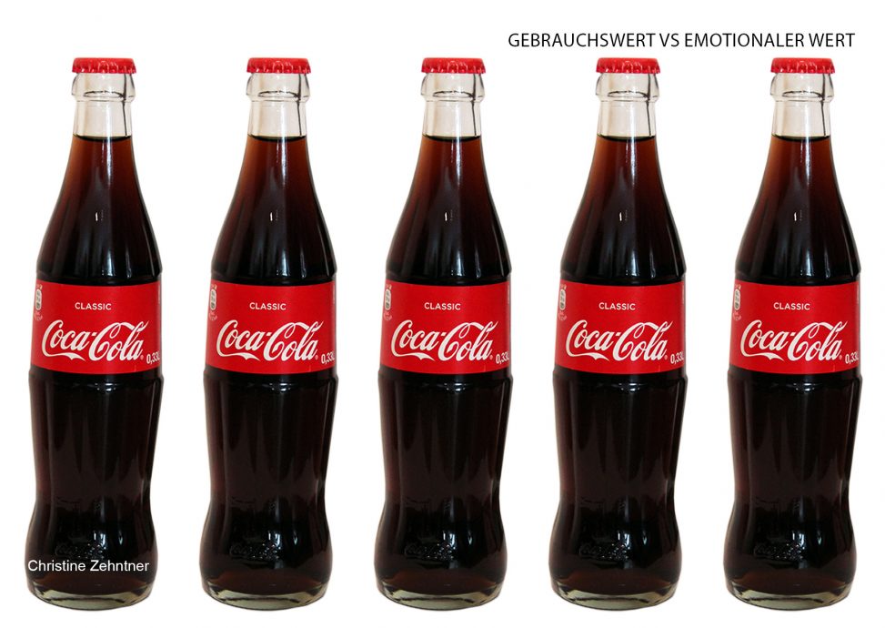 Kopf und Coca Cola Flasche stehen still Coca Cola Flüssigkeit läuft endlos